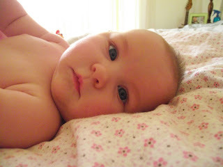 Our poor little girl had to go to the doctor for her latest round of vaccines on Friday. She is up to 16 lbs and over 25" long! Her weight puts her in the 95th percentile for her age so there's no doubt that she is well-nourished. Here are some pics from the last couple of weeks, starting with one of the few sleeping pics that we are getting now.